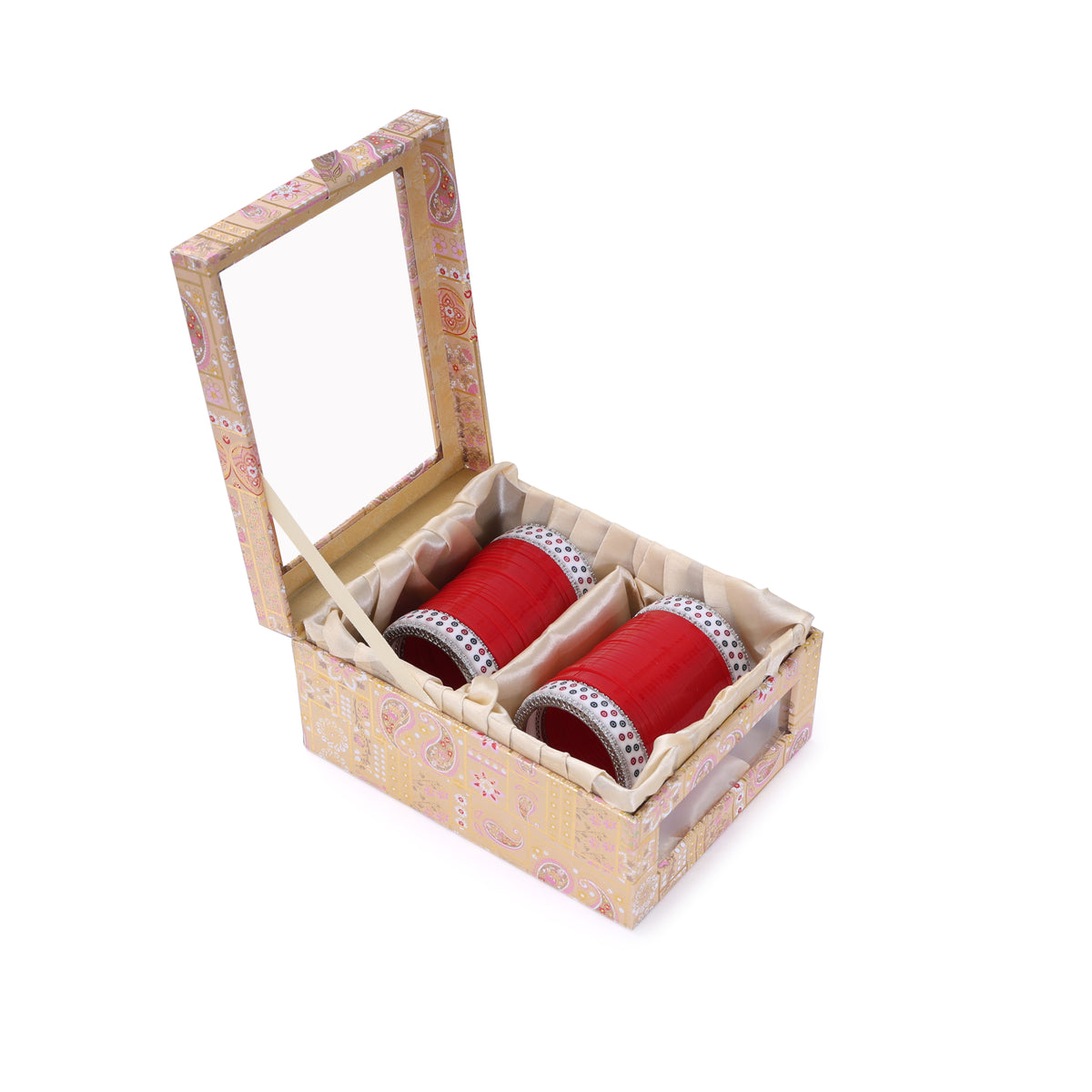 Amaita Dark Red Pure Pearl Chooda with Pair of American Diamond Bangles - 2'2